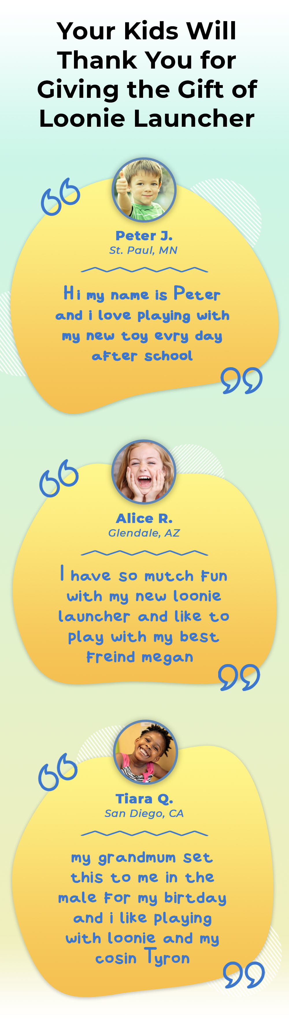 The Loonie launcher has served as a way to keep these children together without driving anyone crazy. I used to be tired of separating them from their usual tussles because they never seemed to agree with anything. I got the Loonie launcher with the intention to see them bond together in a way. I wanted their relationship to grow instead of their constant fighting and it worked. You should see how they sit together, laughing, and playing genuinely. I'm happy.